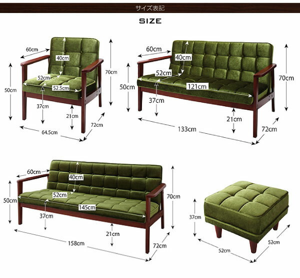 3P約幅158cm座面幅145cm奥行72cm座面奥行52cm高さ70cm座面高37cm